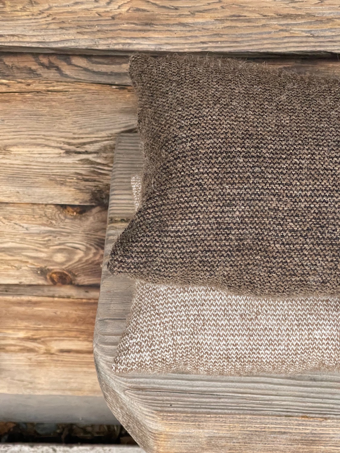 Niskatyyny on valmistettu Aholaidan tilan uniikista villakankaasta, jossa kudelankana on tilamme suomenlampaiden villalanka. Kangas on luonnonväristä villaa.