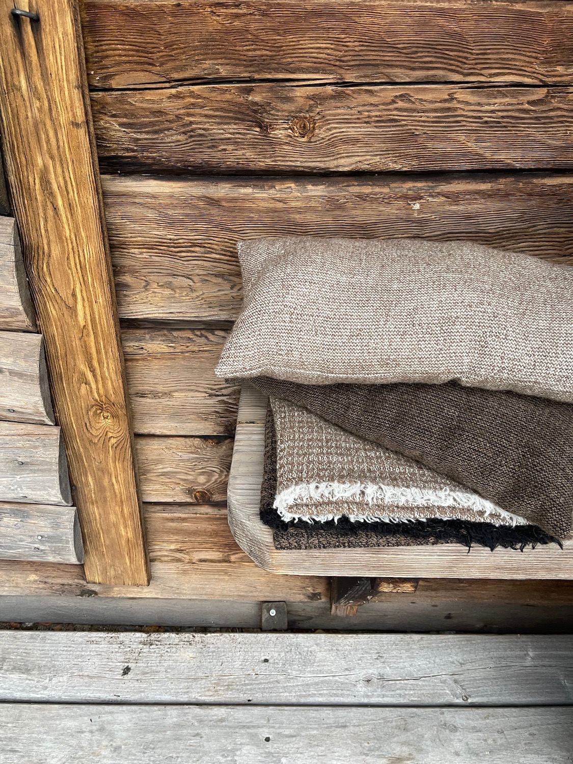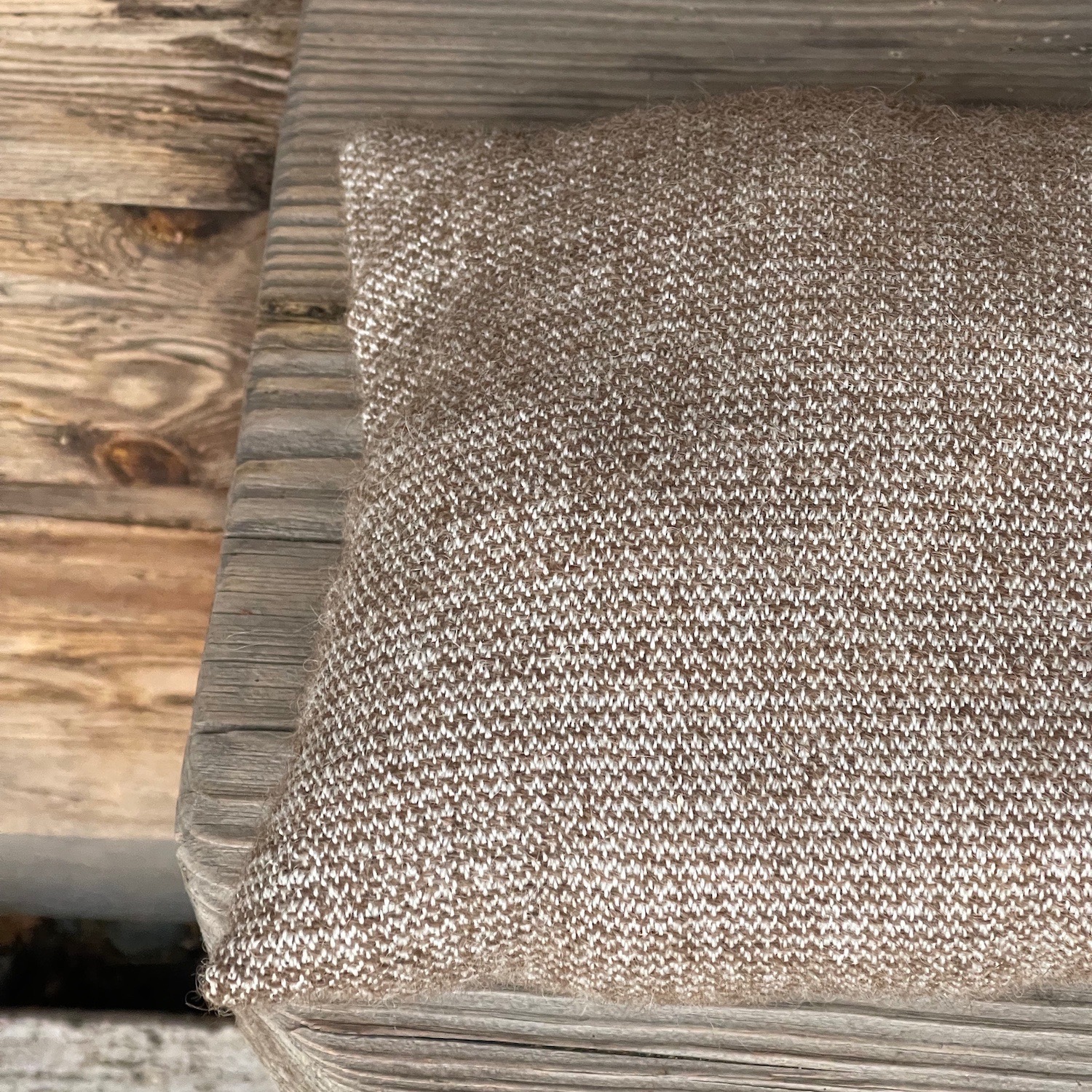 Niskatyyny on valmistettu Aholaidan tilan uniikista villakankaasta, jossa kudelankana on tilamme suomenlampaiden villalanka. Kangas on luonnonväristä villaa.